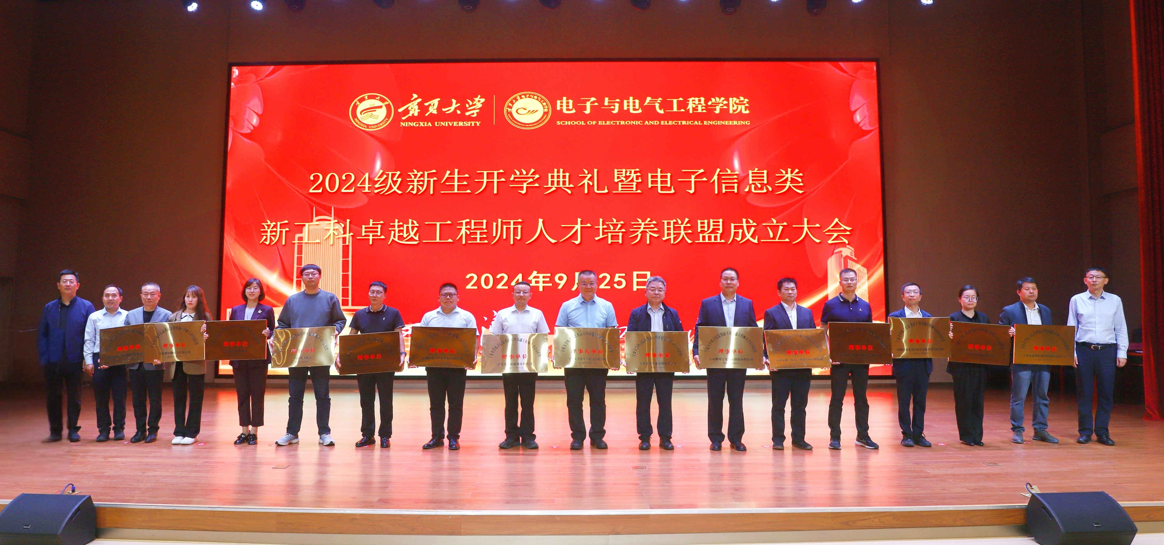 2024级新生开学典礼暨电子信息类新工科卓越工程师人才培养联盟成立大会于贺兰山校区笃行楼一楼报告厅举行,来自全国各地的262名新同学相聚在贺兰山下,与电路共舞,与代码对话,共同开启在老虎机游戏