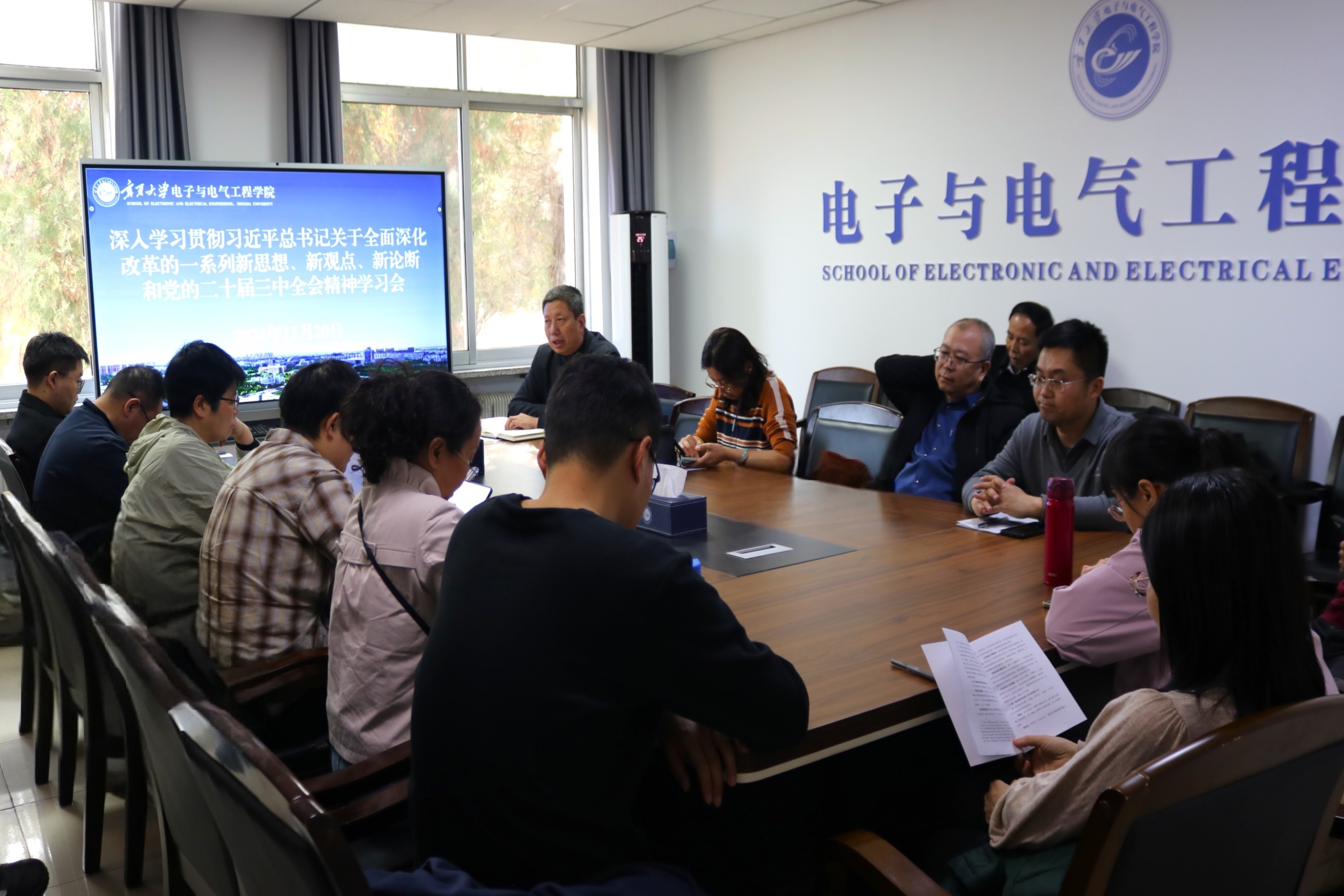 在怀远校区德言楼组织全院教师党员开展学习贯彻党的二十届三中全会精神专题学习。会议由老虎机游戏