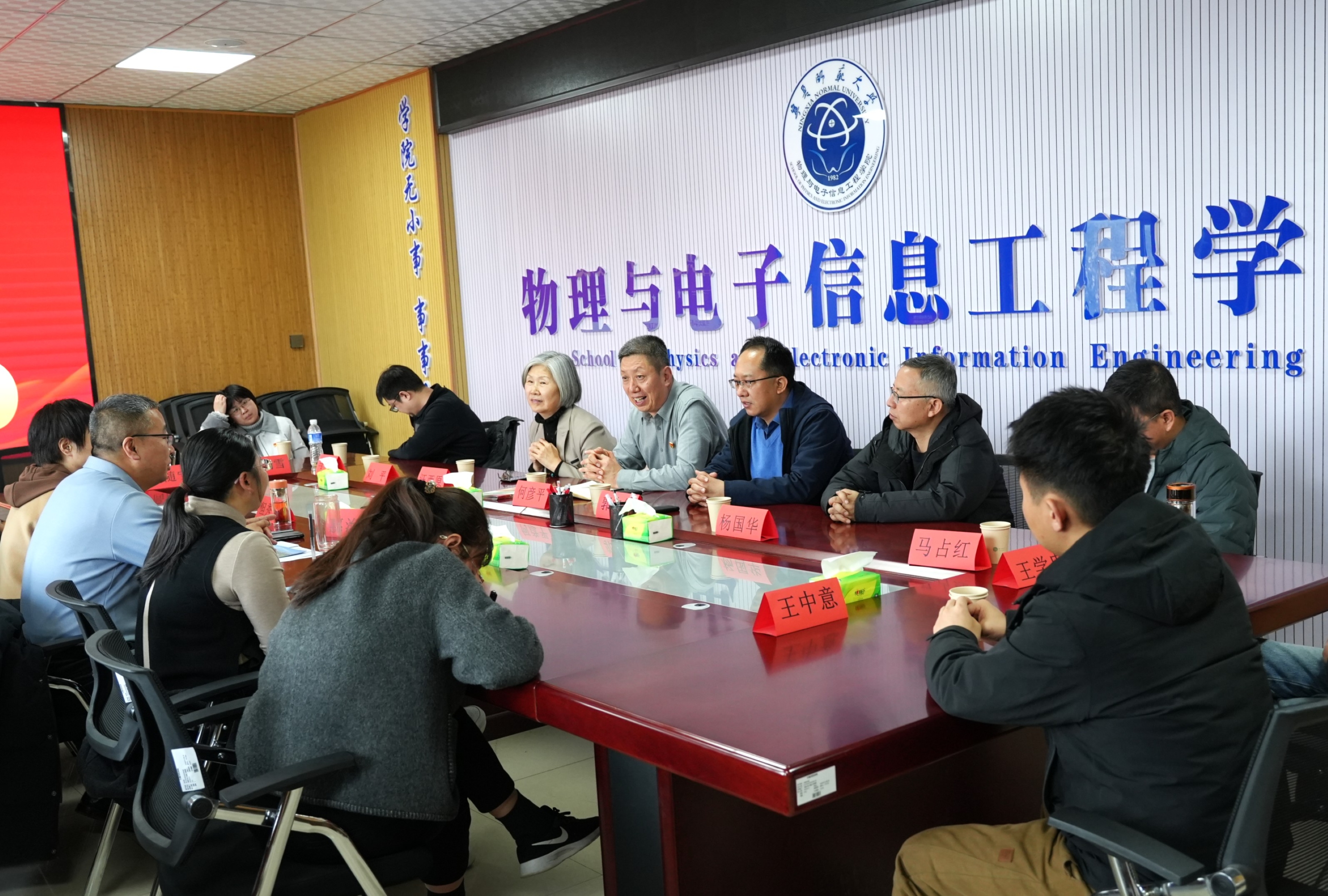 22日,老虎机游戏 一行前往宁夏师范大学物理与电子信息工程老虎机游戏 ,共同开展“凝心铸魂强引领 联合共建促发展”党建联建活动。物电老虎机游戏 党总支副书记、院长惠治鑫,专职组织员但秀芳,副院长杨雅宁、柳小林等陪同参观了先进的专业实验室以及底蕴深厚的校史馆,深入了解了其在学科建设、实验教学方面的先进经验。座谈会上,两院党组织负责人分别介绍了老虎机游戏 党建工作开展情况及成效,双方围绕“高质量党建引领高质量发展”主题,就学科建设、人才培养、科学研究等议题进行了深入交流与探讨。