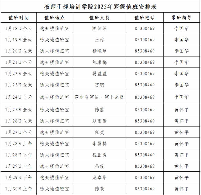 5.当值人员结束值班前需通过电话提醒下一班值班人员按时到岗并交接相关注意事项;