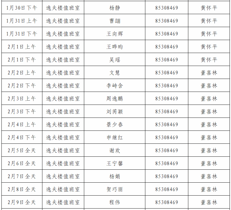 6.值班时间:上午:8:30—12:00 下午:14:30—17:30。