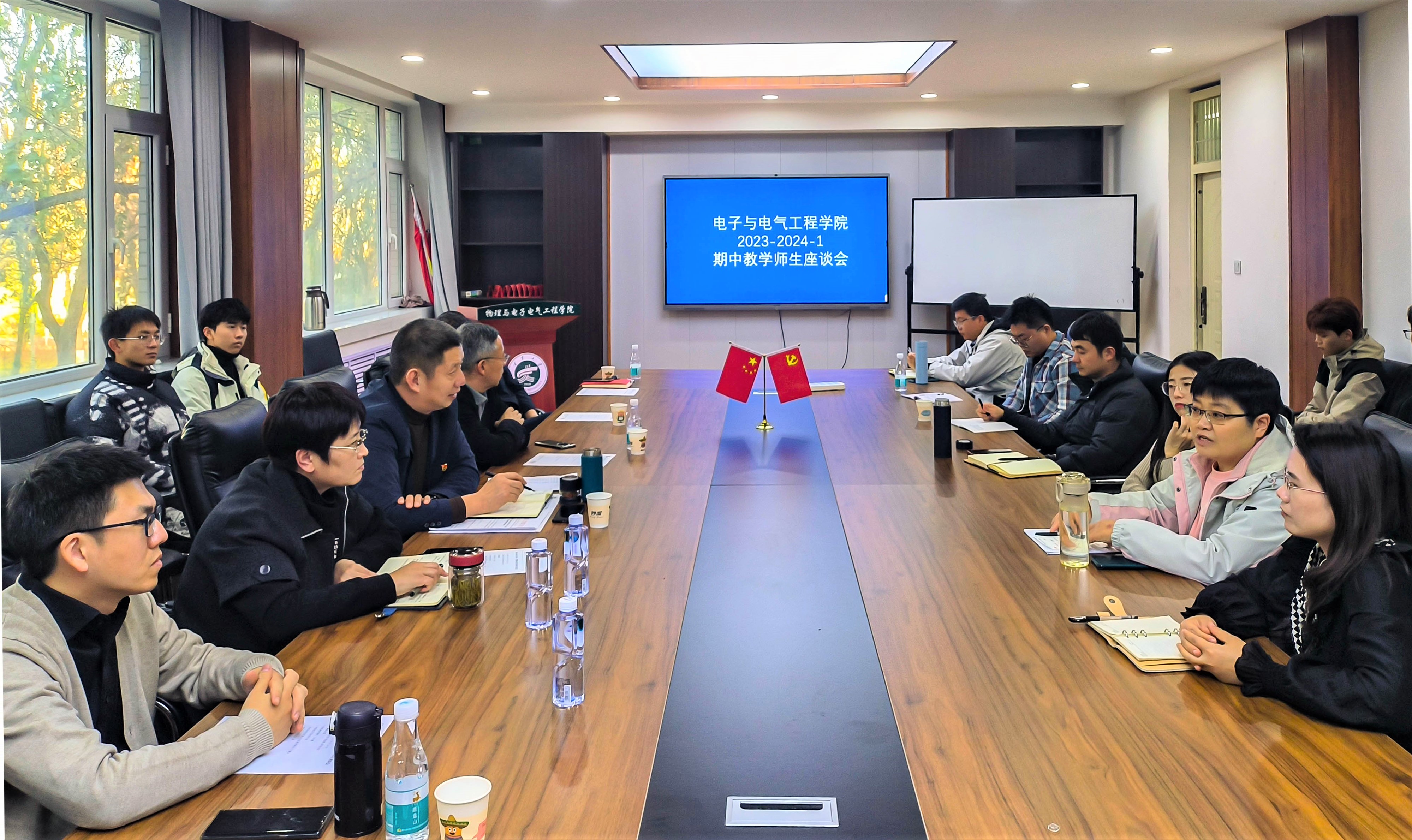于怀远校区博远楼206会议室召开2023-2024学年第一学期期中教学检查师生座谈会。会议由老虎机游戏