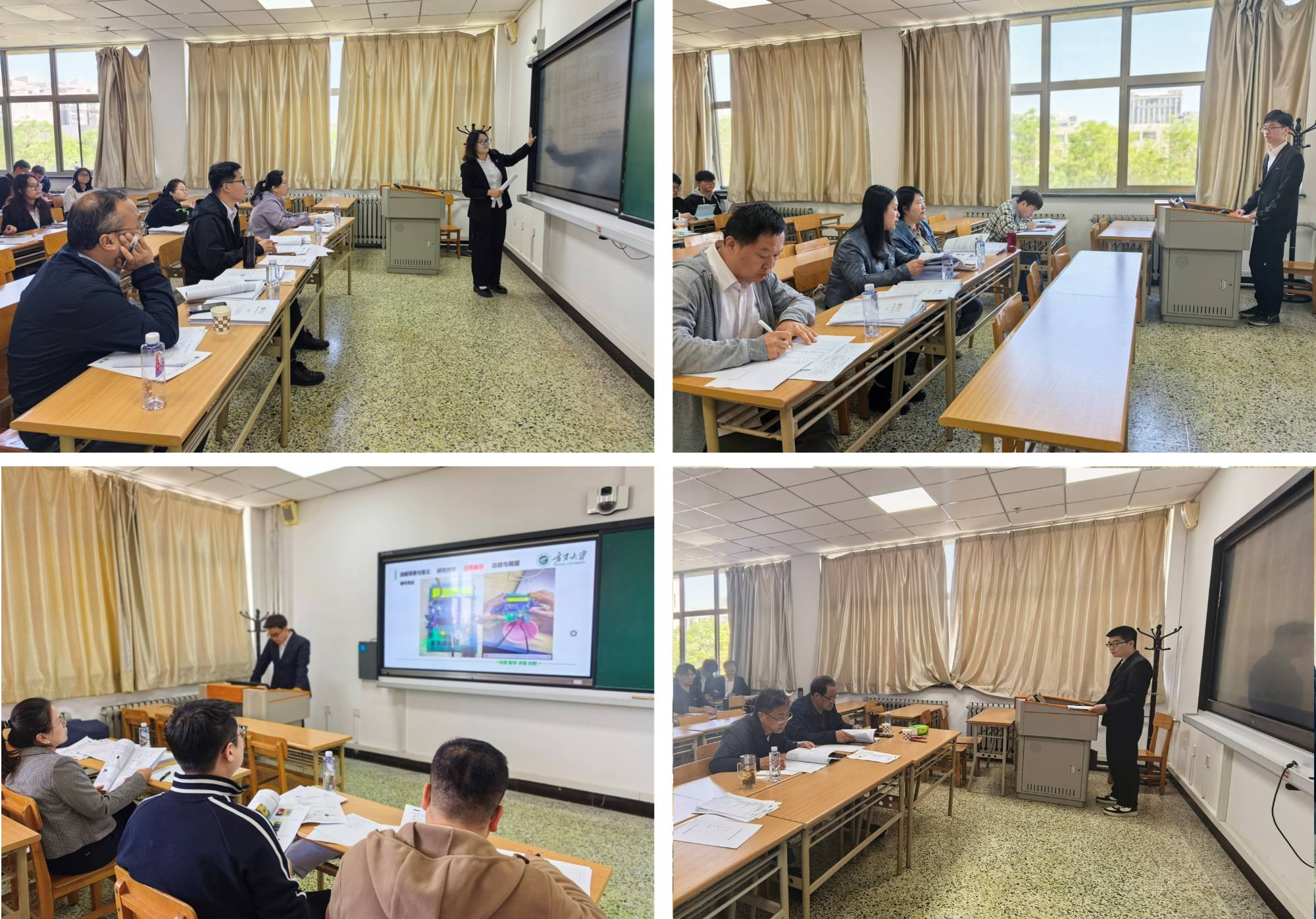 答辩过程中,答辩学生精神饱满,条理清晰地对各自的课题来源、研究意义、内容、方法以及创新点等方面进行陈述,评委老师针对论文的结构、逻辑及内容进行了深入的点评与提问,同时也为学生们提供了宝贵的意见和建议。面对评委的提问,同学们展现出了清晰的思路和充分的论证,体现了他们的专业素养。