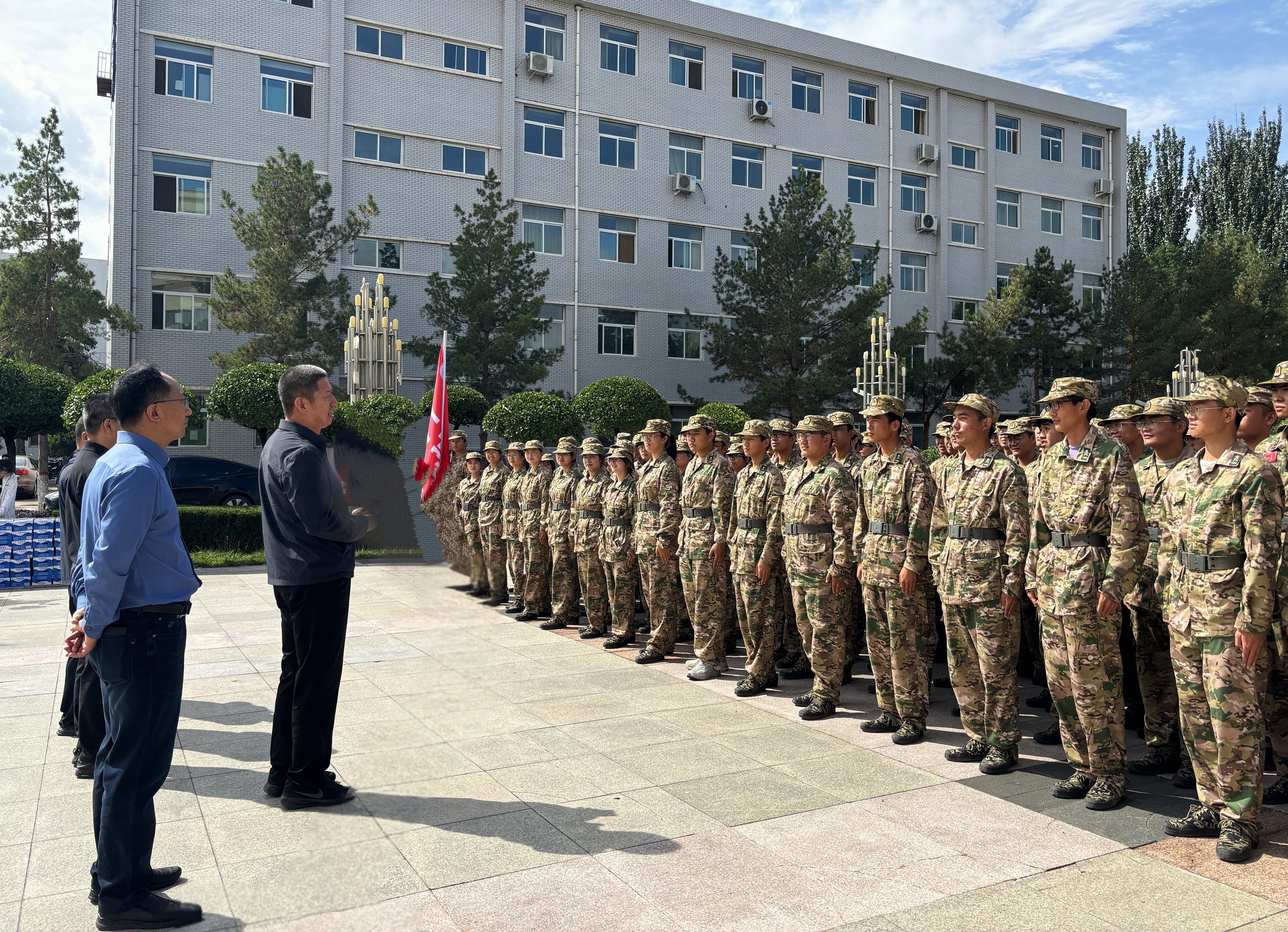 对带训教官和老师表示感谢,对参训学生致以亲切的慰问。他讲到,军训,作为大学生活的第一课,不仅是一次体能的挑战,更是一次心灵的洗礼。他希望同学们将军训中培养出的敢于吃苦、团结协作、勇于担当的优良品质,带入到今后的学习和生活中去,持续保持高昂的斗志、严谨的态度,展现新时代新青年的蓬勃朝气,不断挑战自我、超越自我,成就自我,为自己的大学生活书写精彩的开篇,努力成长为德智体美劳全面发展,堪当民族复兴重任的时代新人。