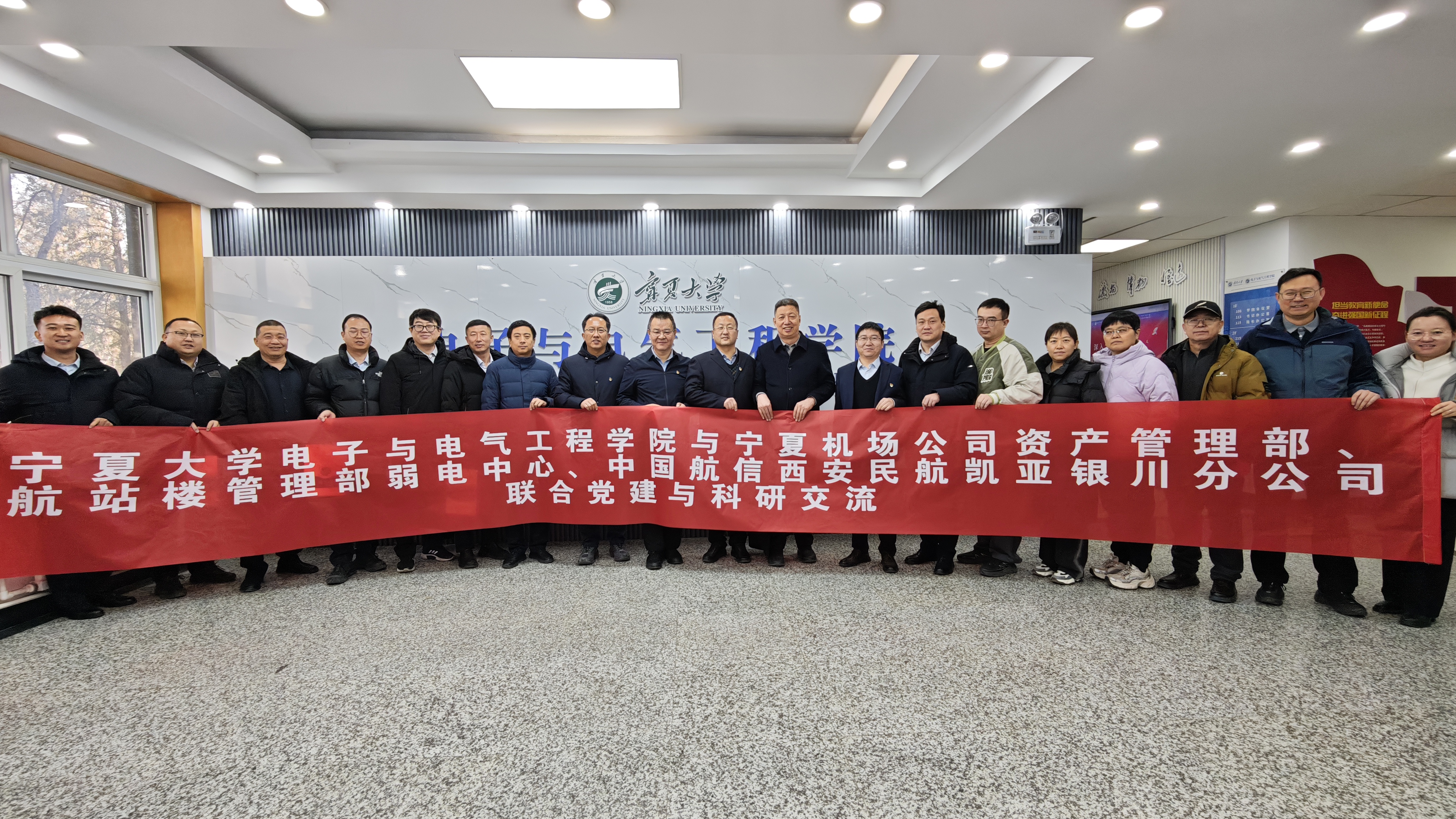 与宁夏机场公司资产管理部、航站楼管理部弱电中心、中国航信西安民航凯亚银川分公司共同举办“党建联建聚合力 数字赋能促创新”联合党建与科研交流活动。座谈会由老虎机游戏