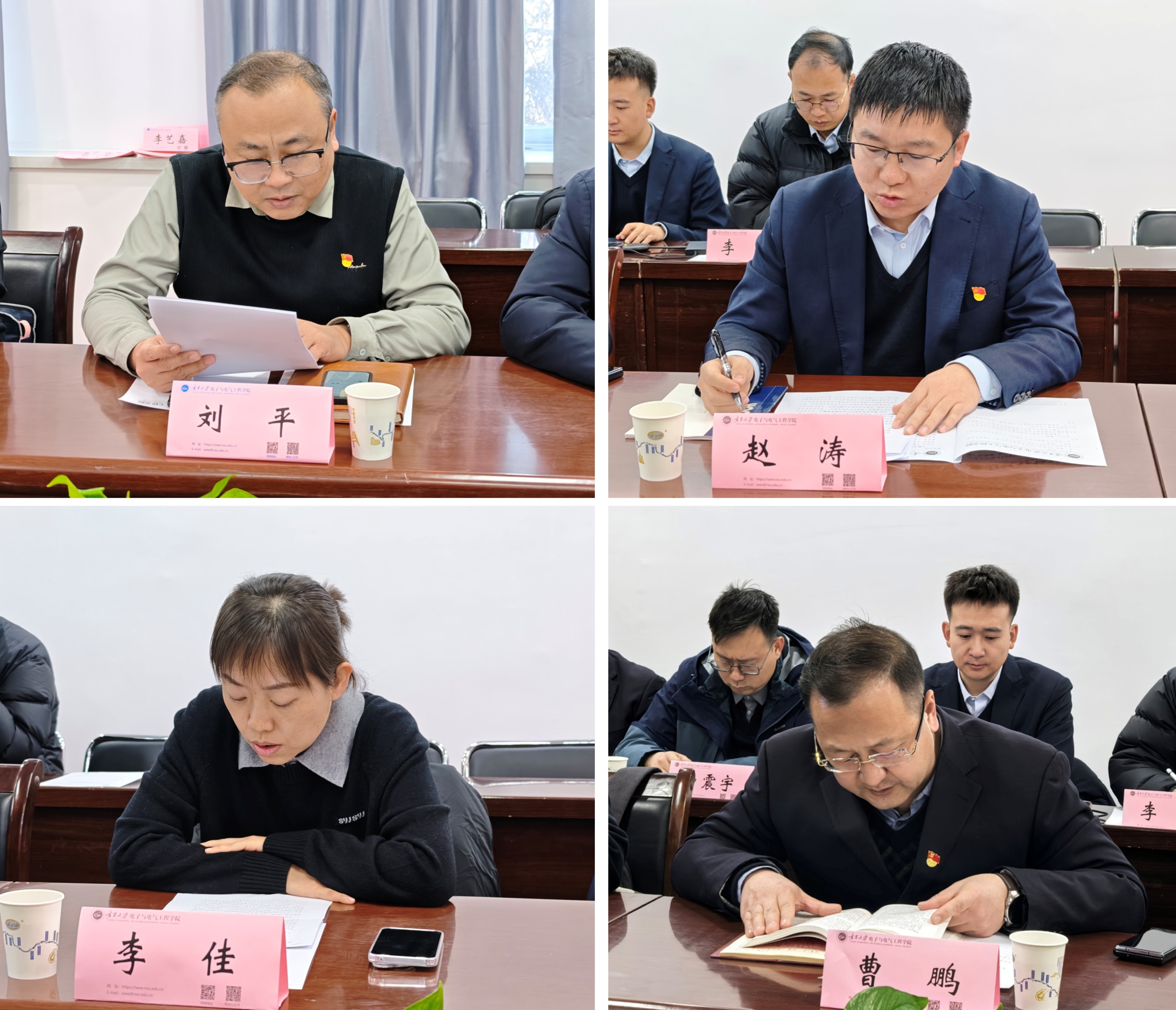 电子与通信工程系党支部书记刘平、宁夏机场公司资产管理部党支部书记赵涛、航站楼管理部弱电中心党支部书记李佳、中国航信西安民航凯亚银川分公司党支部书记曹鹏先后领学了党的二十届四中全会及自治区党委十三届十一次全会精神。通过集体学习,与会人员进一步统一了思想,深化了对国家与地区发展战略的认识。
