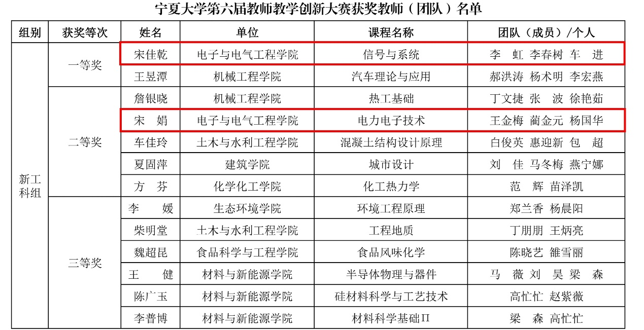 宋佳乾教师团队荣获新工科组一等奖,宋娟教师团队荣获新工科组二等奖,老虎机游戏