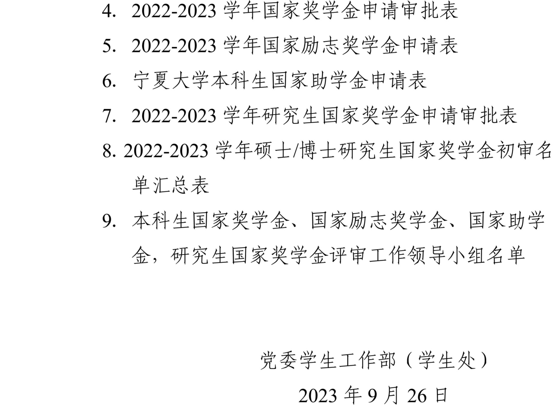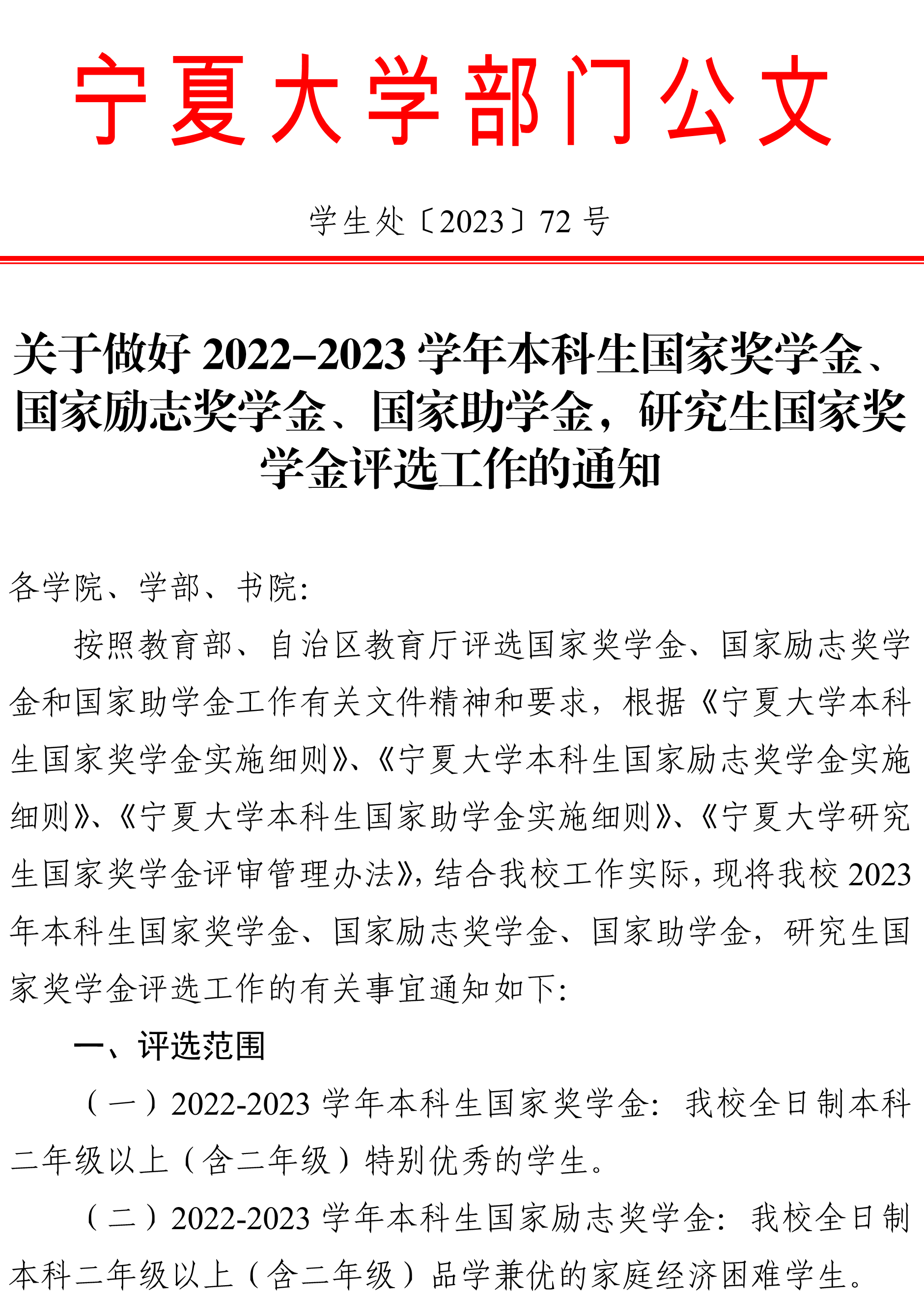 关于做好2022-2023学年本科生国家奖学金、国家励志奖学金、国家助学金,研究生国家奖学金评选工作的通知