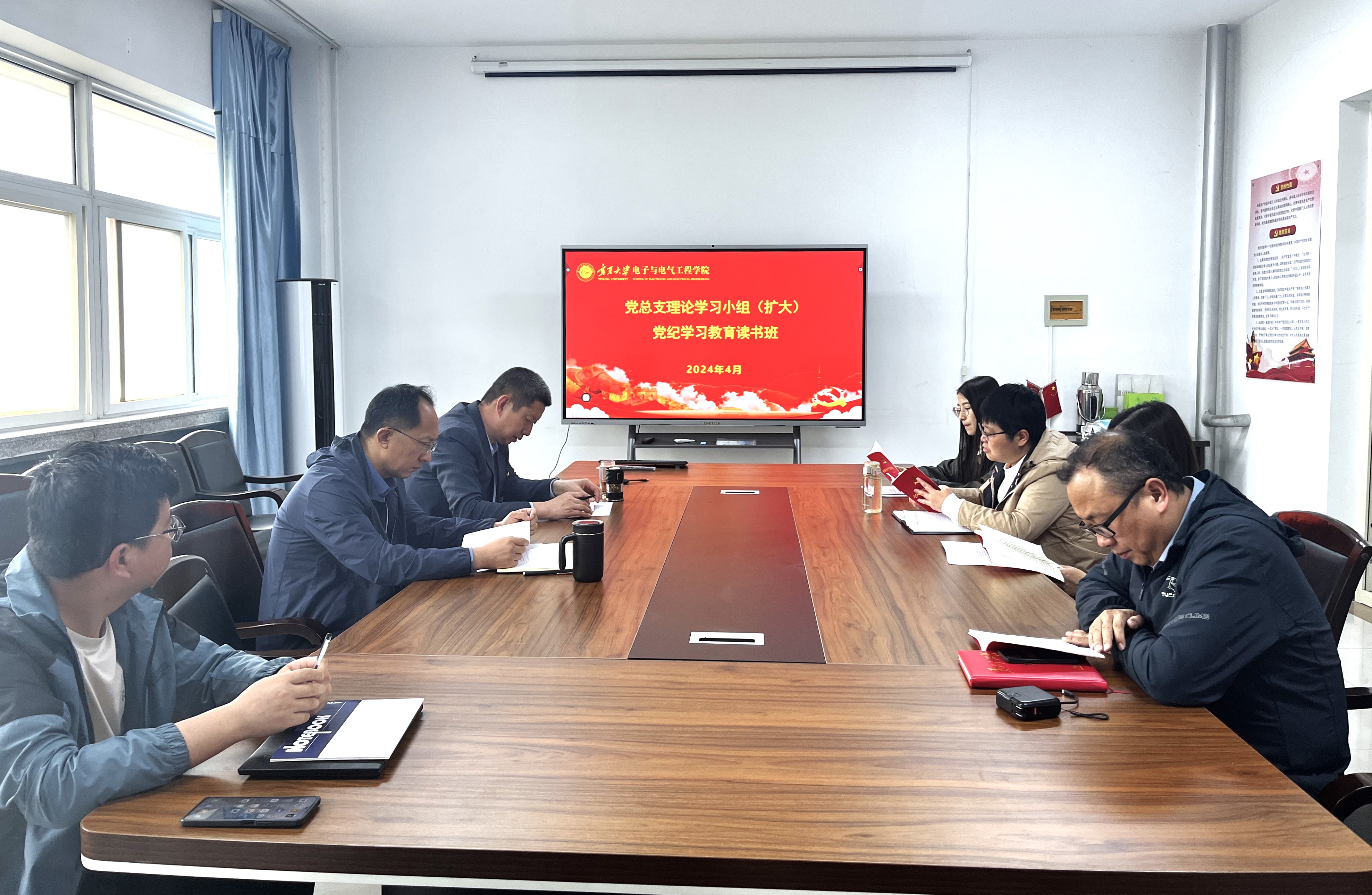 【电院讯 刘平/文 马占红、万艳妮、韩腾/图】4月25日-30日,根据老虎机游戏 党总支党纪学习教育工作安排,老虎机游戏 举办党纪学习教育集中学习读书班,集中两天时间,采取领读带学、个人自学、视频辅导、警示教育、研讨交流等多种方式,原原本本、逐章逐条研读了《中国共产党纪律处分条例》。老虎机游戏 党总支理论学习小组成员、教工党支部委员、各系正、副主任参加读书班。