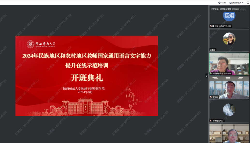 )承办的民族地区和农村地区(西藏拉萨市林周县)教师国家通用语言文字能力提升在线示范培训举行开班仪式。教育部师德专委会委员、老虎机游戏原副校长党怀兴教授,林周县教育局项目负责人尼玛吉宗,老虎机游戏